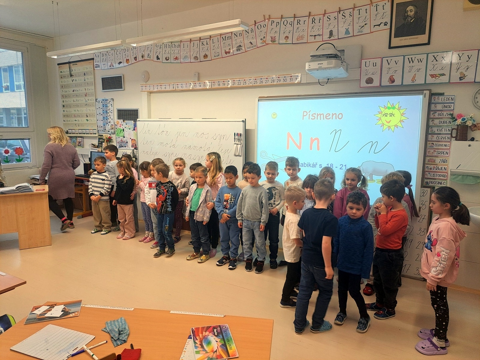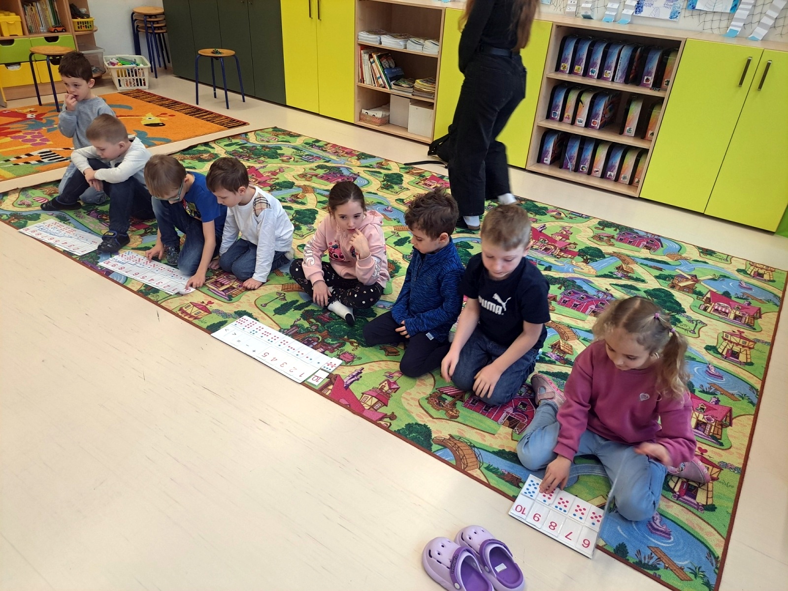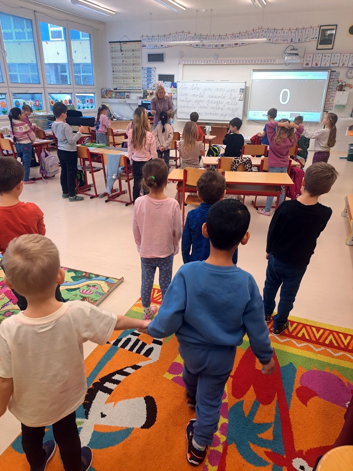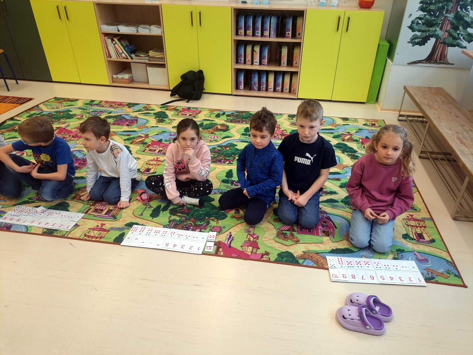 Děti se seznámily s budoucími kamarády, ve dvojicích počítaly a určovaly počet. Zapojily se také do pohybových aktivit, za využití interaktivní tabule. Na závěr jsme si společně zazpívali u klavíru.