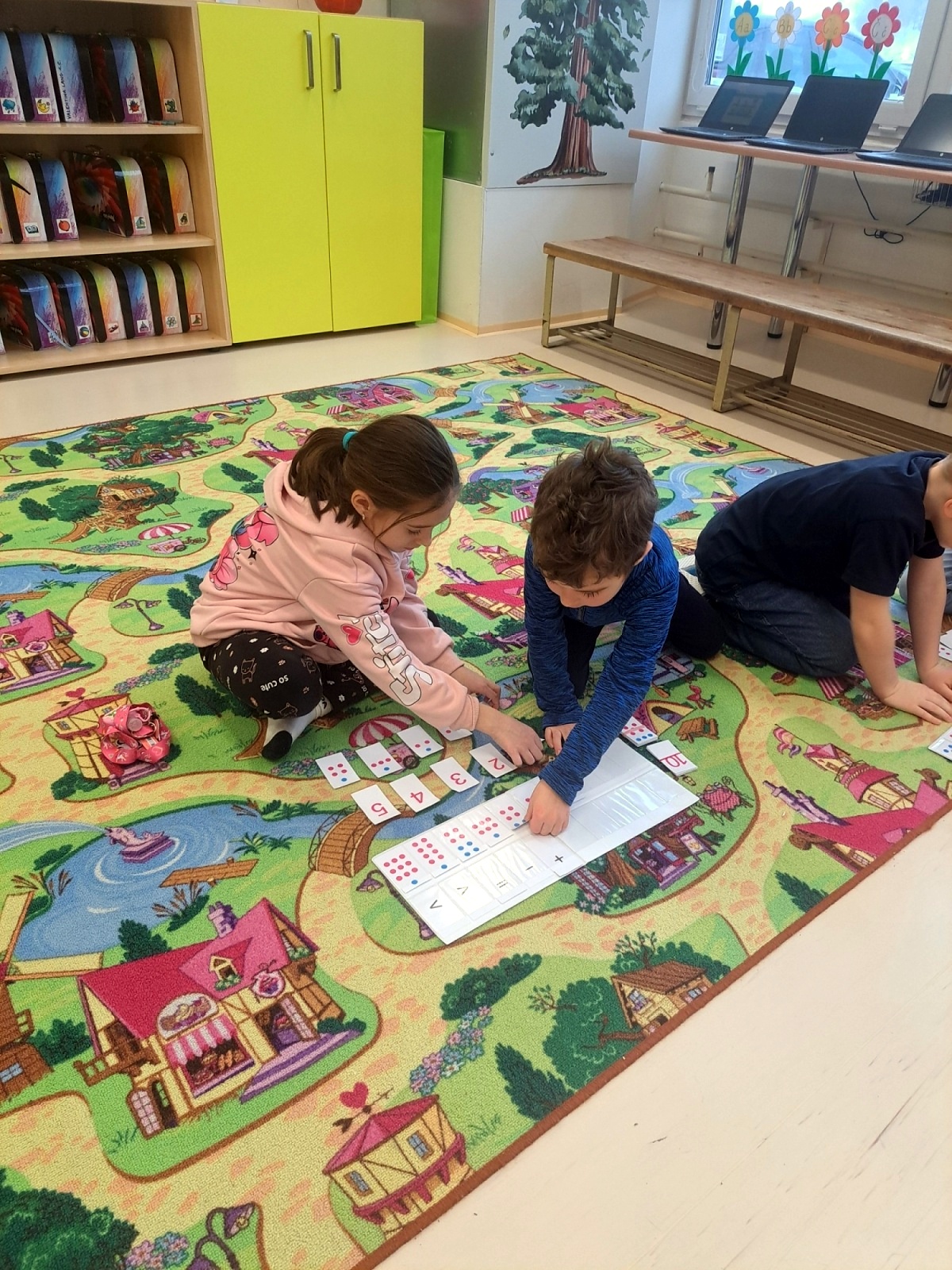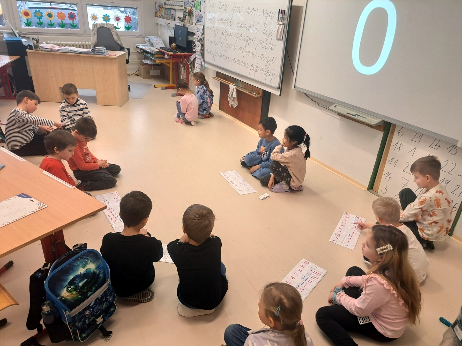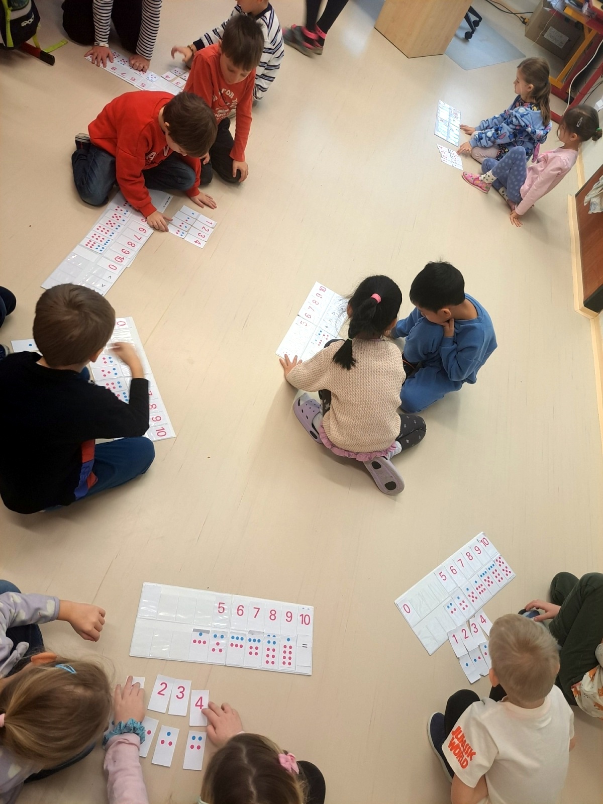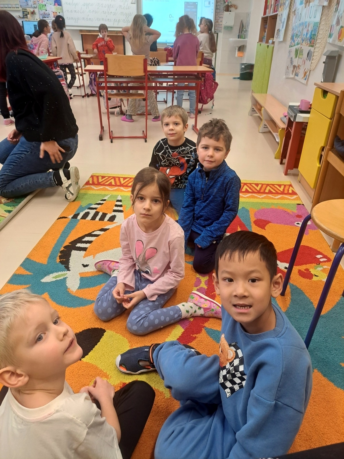 Děti se seznámily s budoucími kamarády, ve dvojicích počítaly a určovaly počet. Zapojily se také do pohybových aktivit, za využití interaktivní tabule. Na závěr jsme si společně zazpívali u klavíru.