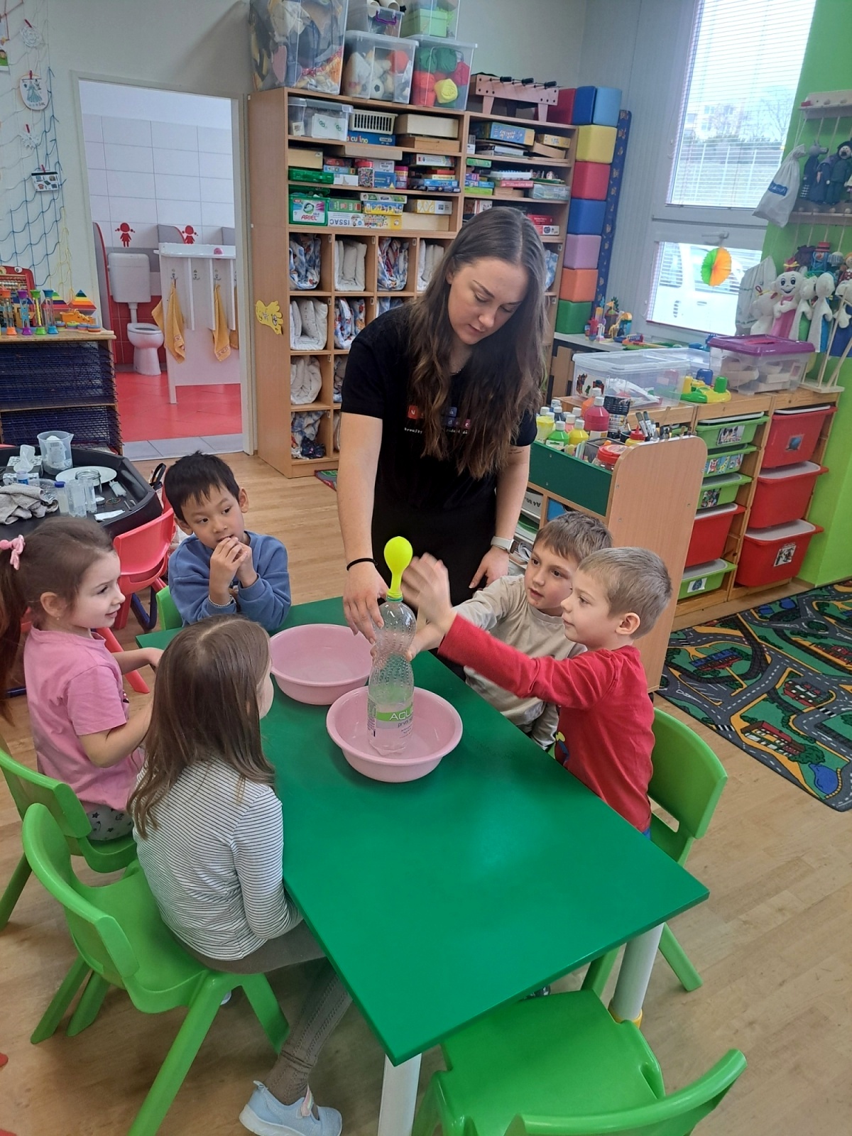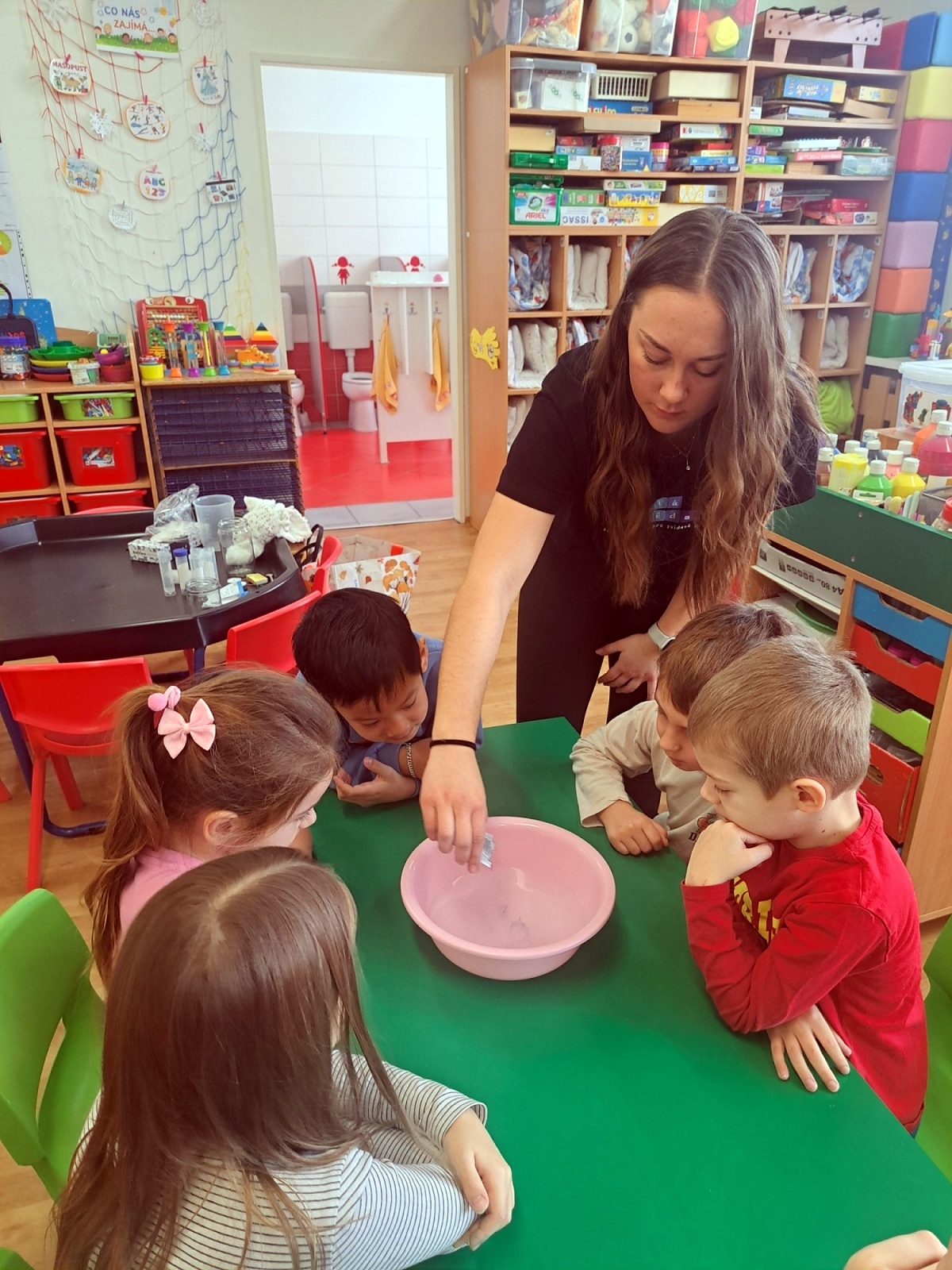 Pomocí jednoduchých pokusů si vyzkoušely, že vzduch je všude kolem nás, i když ho nevidíme, a že dokáže hýbat předměty či zabírat místo. Děti si hravou formou rozvíjely zvídavost, přemýšlení i radost z objevování.