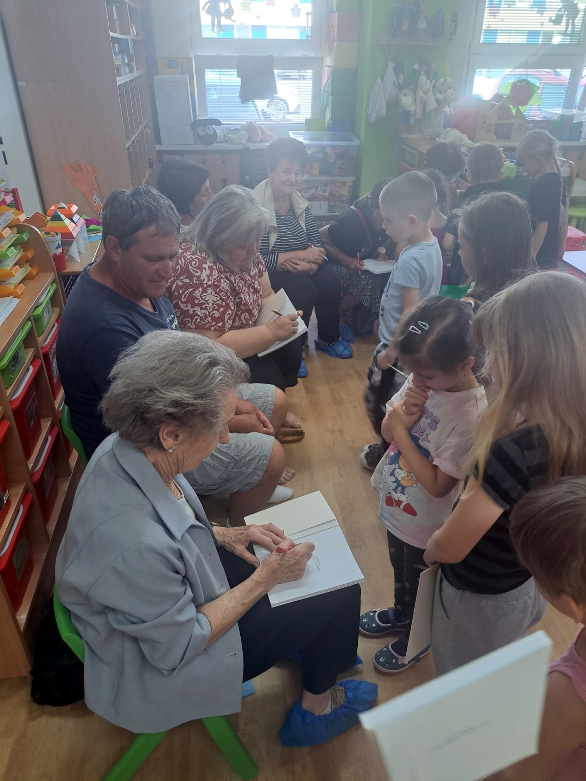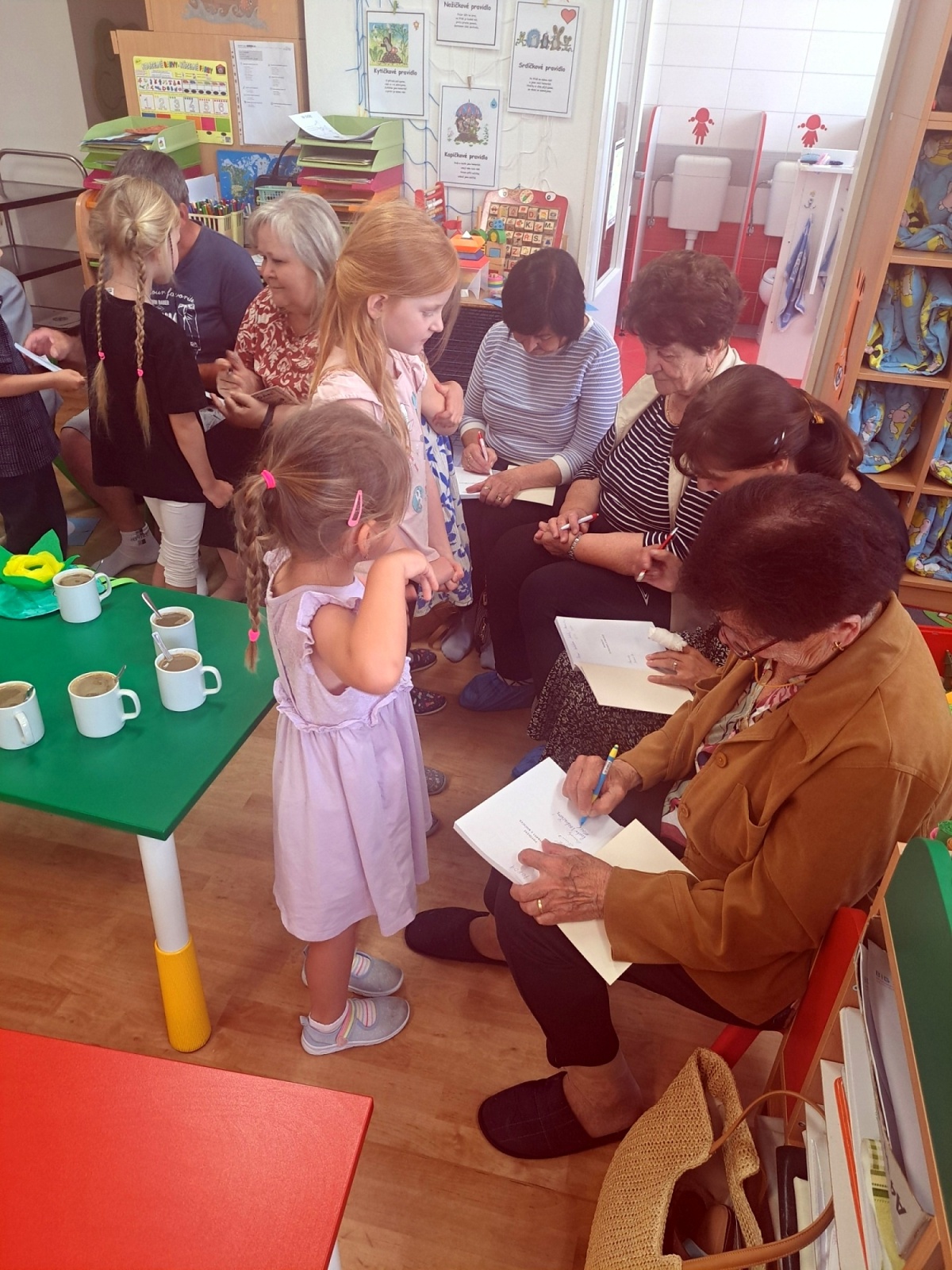 Na oplátku si pro ně děti připravily krátké hudební pásmo. Následovala autogramiáda knih, které byly zakoupeny právě z tohoto projektu. Celý den se nesl v milé a slavnostní atmosféře, všem se velmi líbil a už teď se těšíme na pokračování v příštím roce.