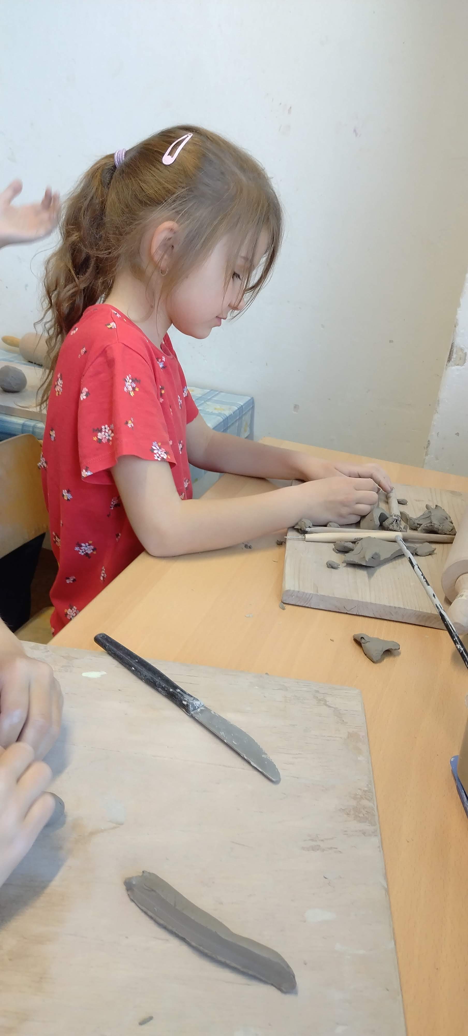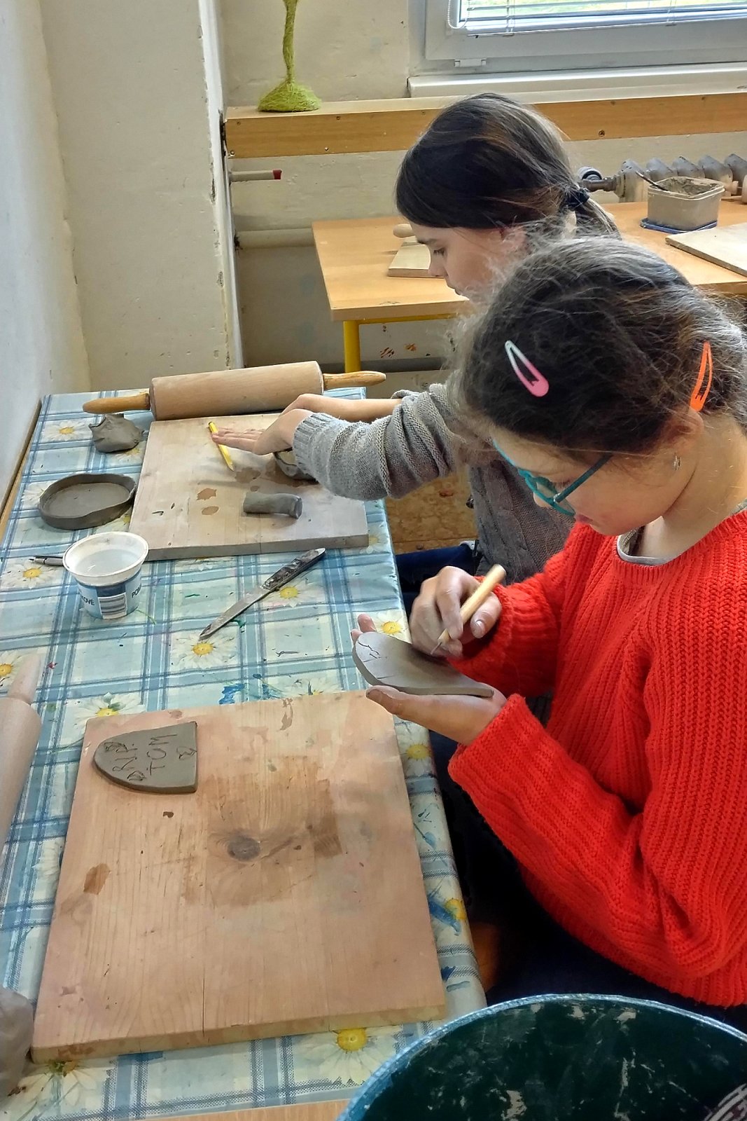 V kroužku si kreslíme návrhy, učíme se různé techniky při práci s hlínou (“obtiskávání”, přidávání skelné drtě), používáme speciální nástroje, které nám práci usnadňují, hlínu spojujeme, lepíme “šlikrem”. Používáme více druhů hlíny, tvoříme výrobky 2D i 3D a po prvním výpalu si výtvory “naglazujeme”, aby měly požadovanou barvu a abychom z nich měli radost a mohly jít na finální výpal. Často myslíme na naše blízké a vyrábíme pro ně dárečky - k narozeninám, svátkům, ke Dni matek nebo ke Dni otců, atd.