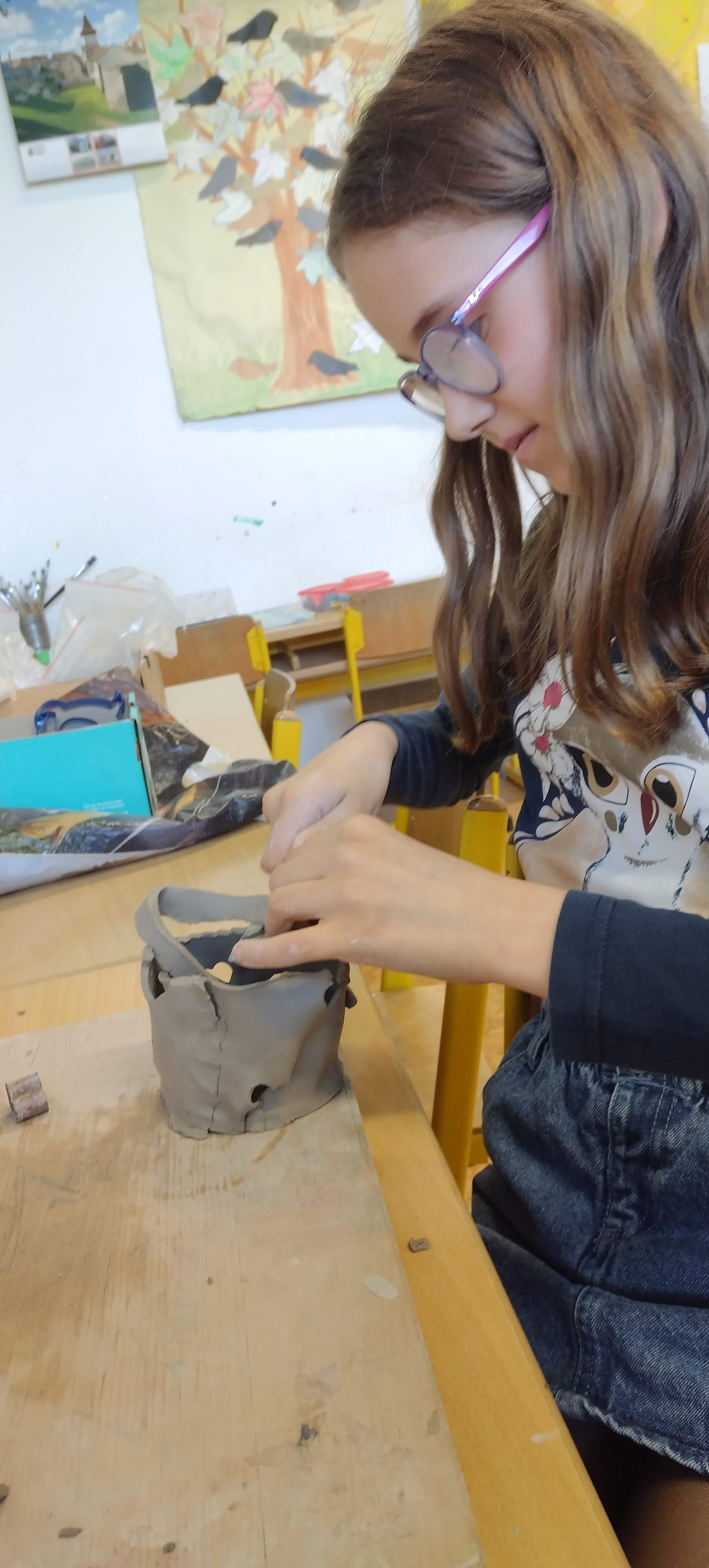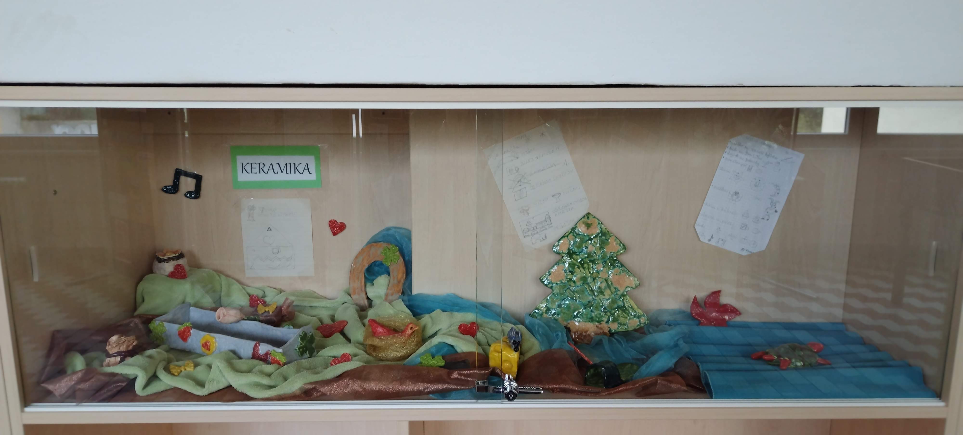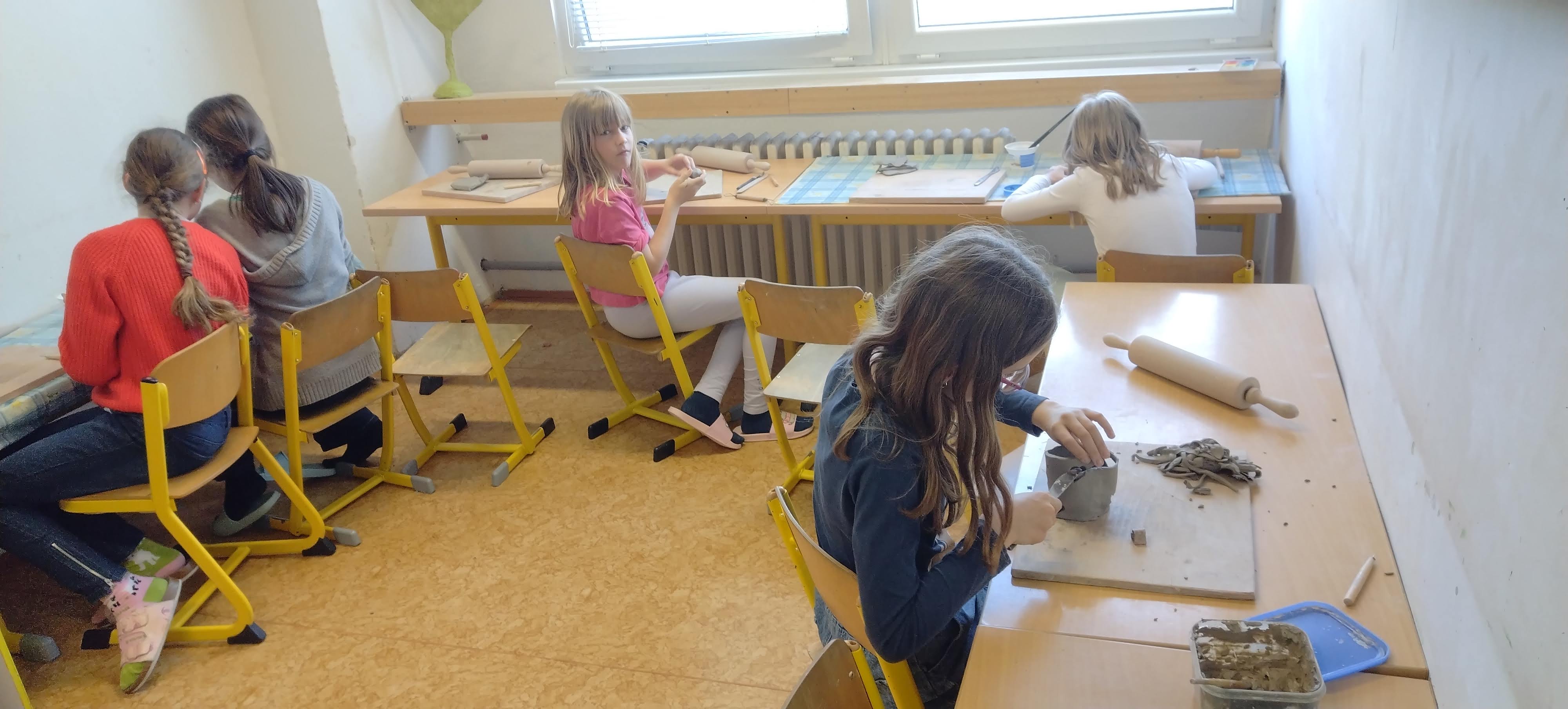 Práce s hlínou je velmi relaxační, rozvíjí fantazii dětí, pomáhá zlepšit jemnou motoriku. I přesto, že není úplně jednoduché uvést naše představy a plány s hlínou do požadovaného tvaru a vytvořit očekávaný výrobek, přesto, že se u toho často ušpiníme, stejně jsme stále nadšení pro tuto tvůrčí činnost a práce s keramickou hlínou a glazurami nás moc baví. Svědčí o tom naše zajímavé výtvory, které můžete obdivovat ve vitríně u jídelny, když půjdete na svačinku nebo oběd.
