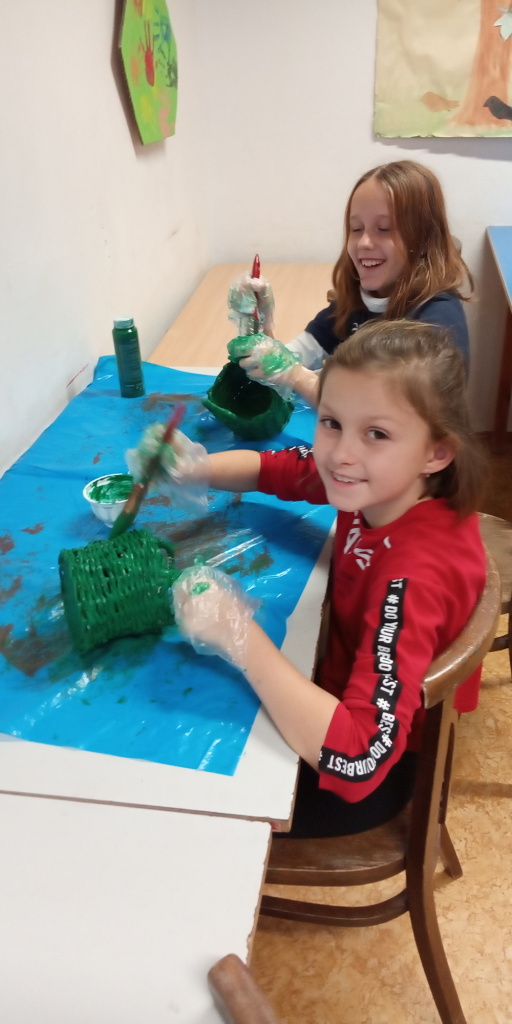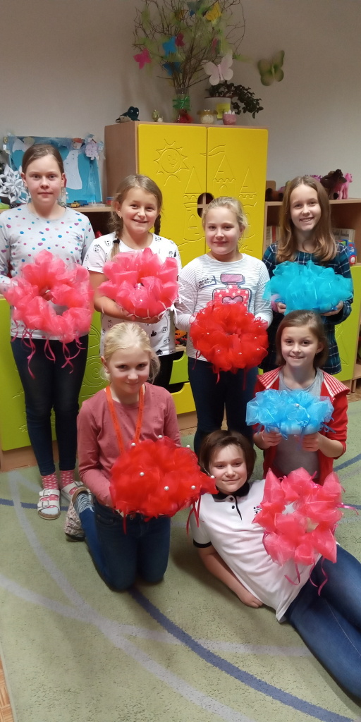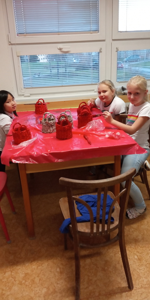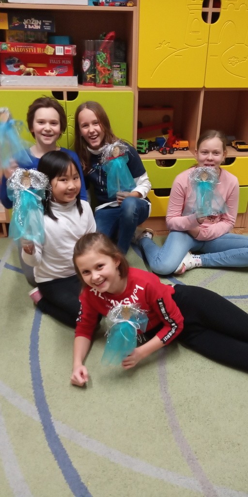 Velkou radost měly děti z návštěvy rodičů a sourozenců. Tvořili jsme anděla na výzdobu do jídelny. Děti doplétaly košíčky z papírových ruliček na vánoční aranžmá a pochlubily se svými návrhy na PF. Rodiče byli seznámeni s další činností kroužku, byla jim předvedena ukázka motání ruliček a pletení košíčku. Děkujeme všem za návštěvu v našem kroužku. Jménem dětí děkuji mamince od Elinky Molíkové, která dětem přinesla mandarinky a perníčky.