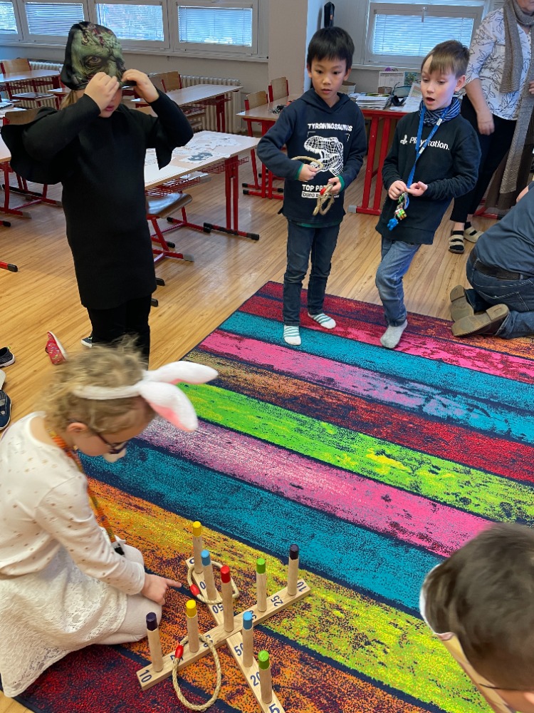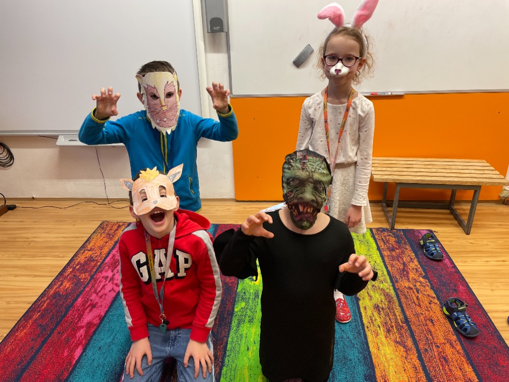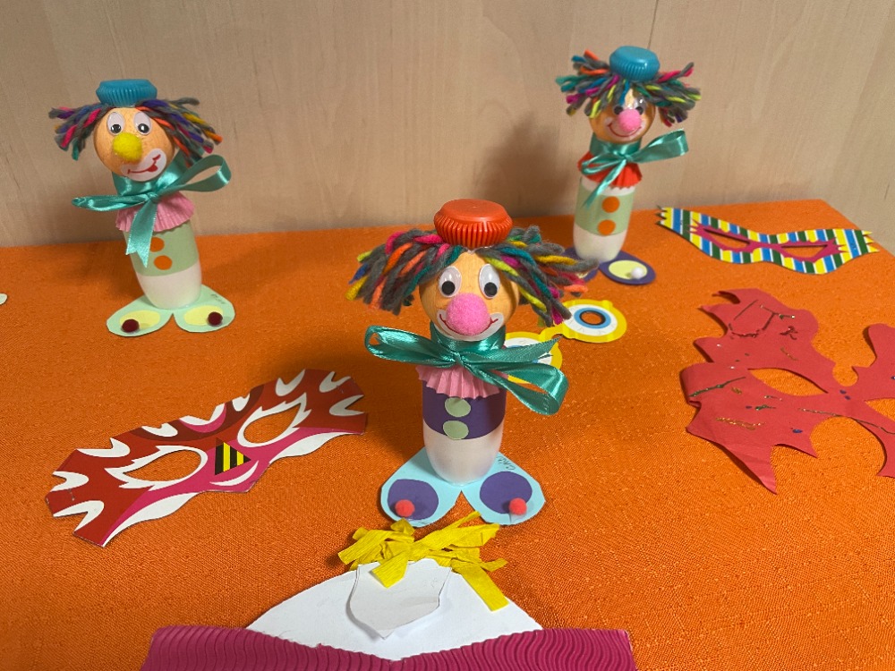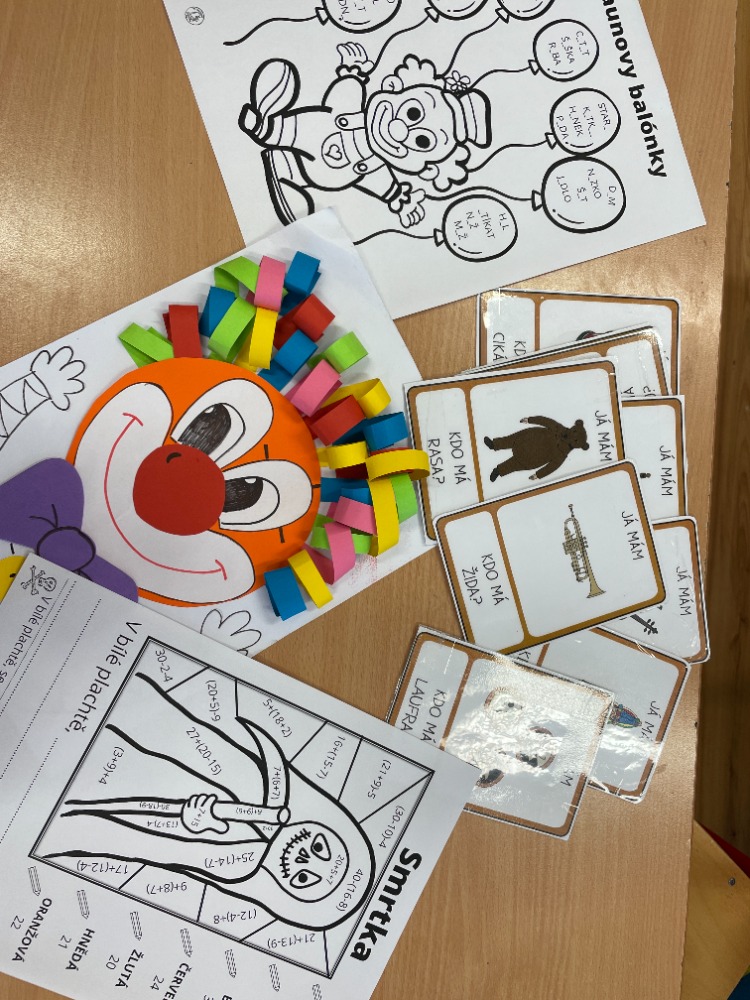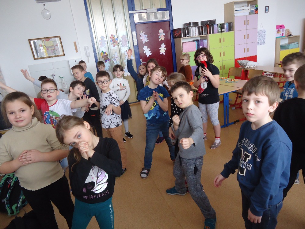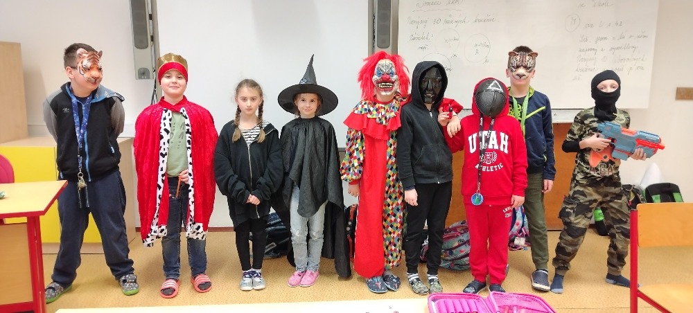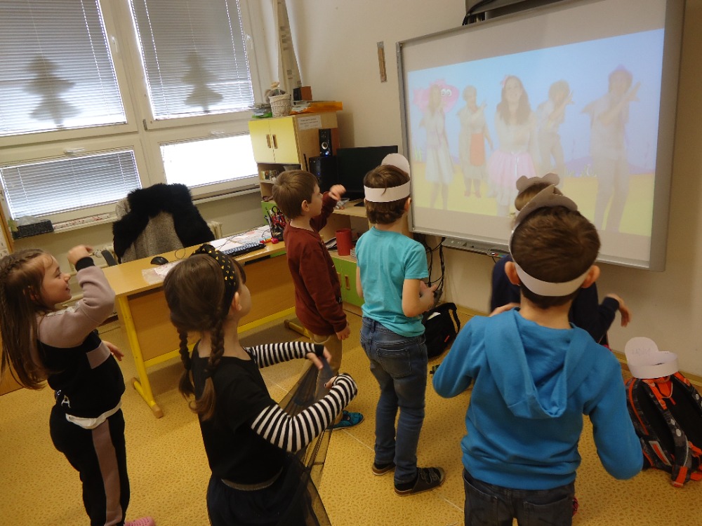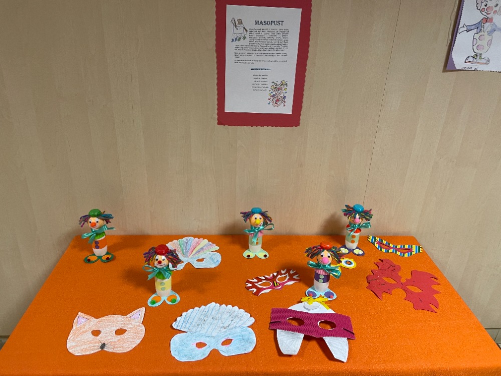 Četli jsme si z knihy Lidové tradice, jak se Masopust slaví. Na interaktivní tabuli jsme si pustili krátkou pohádku, o tom, jaké masopustní zvyky se dodržují a jaké masky se v průvodu objevují. Také jsme si pouštěli hudbu a podle tabule jsme tancovali. Zahráli jsme si spoustu zábavných her, vyráběli jsme masky, klauny a luštili křížovky k danému tématu. Naše výrobky jsme si vystavili v družinovém vchodě.