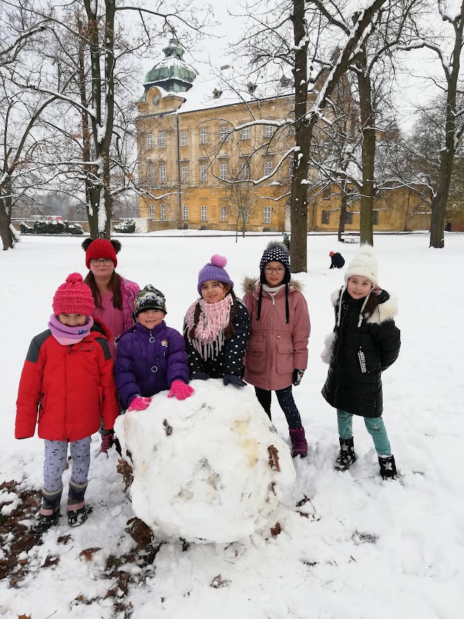 Jak málo stačí k dětské radosti? Pár sněhových vloček a prostory našeho parku.
