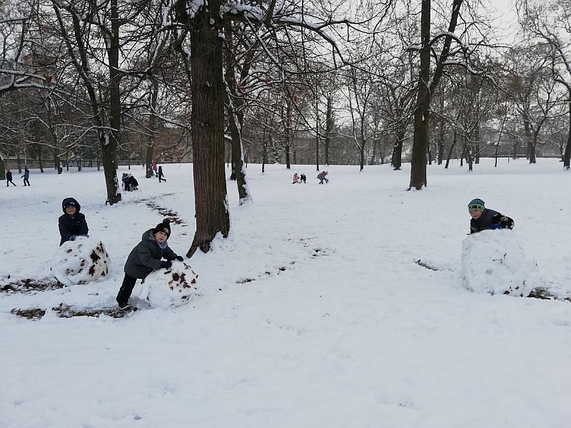 A děti bez těchto dopravních prostředků, si užívají stavění sněhuláků nebo jen tak napodobují práci některého hmyzu a vyrábí koule gigantických rozměrů.
