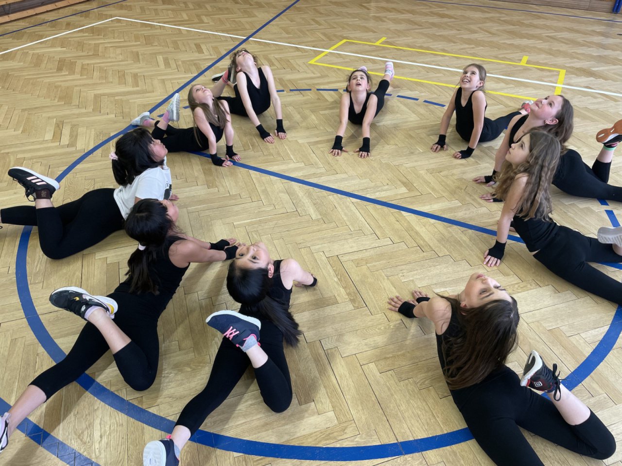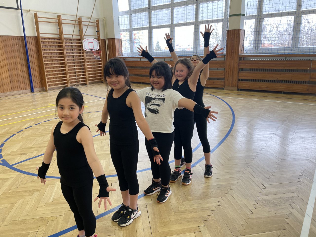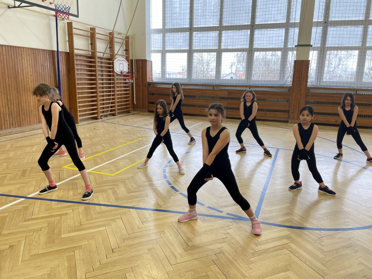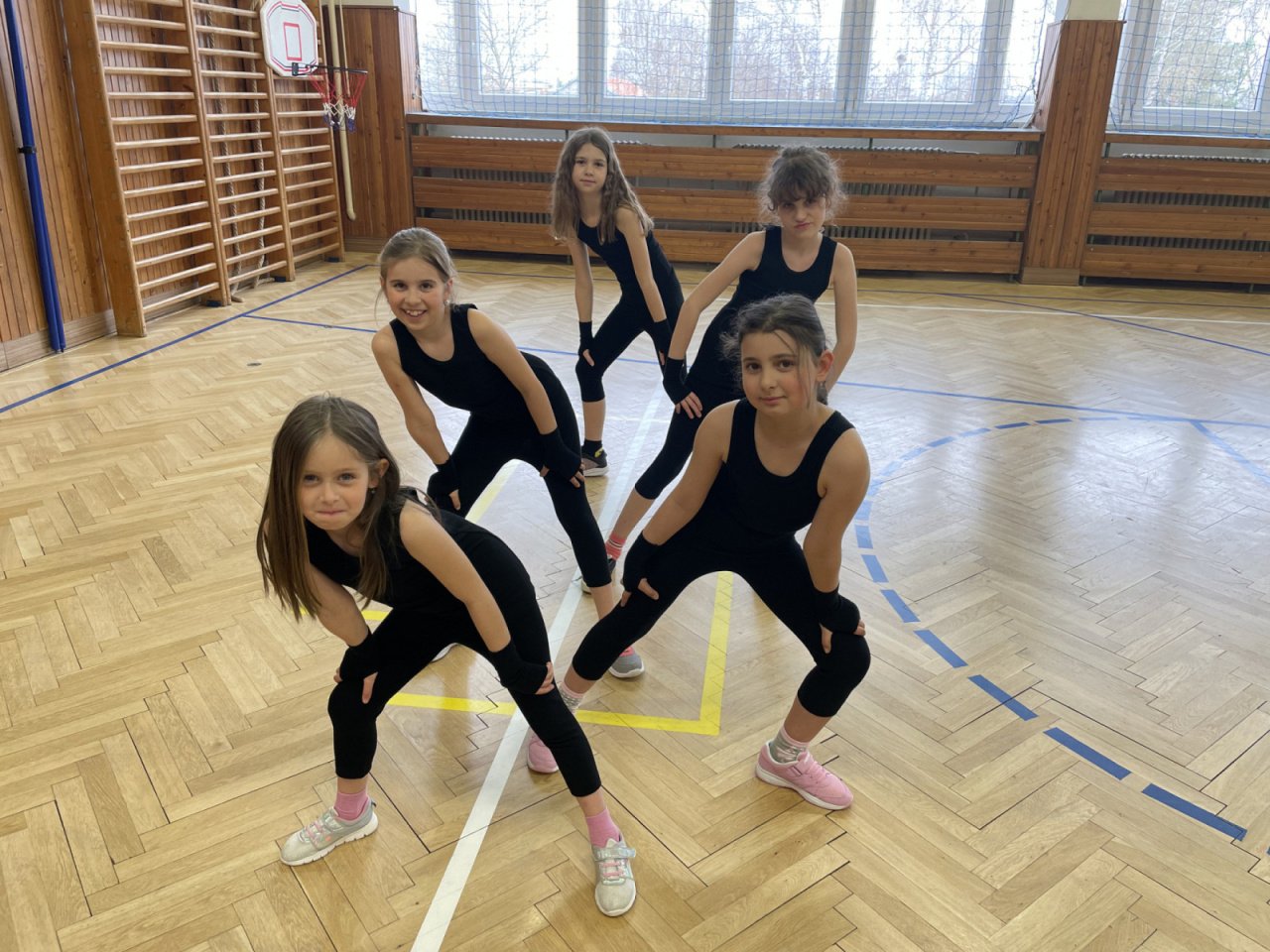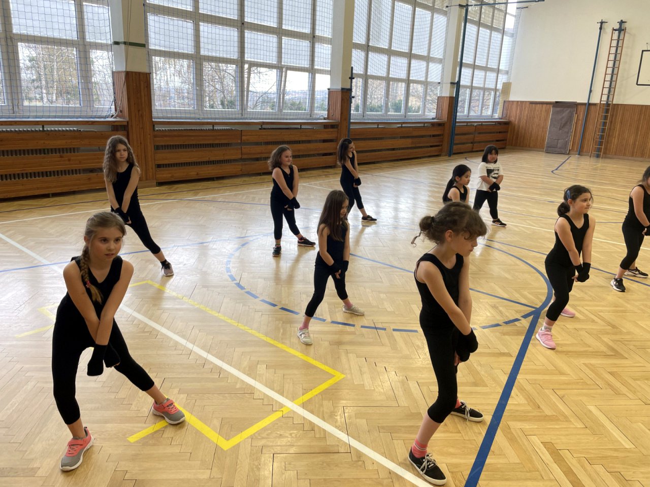 I přes nelehké začátky děvčata pilně pracovala a díky snaze a úsilí se dopracovala velmi daleko. Učíme se základní pohybové dovednosti, zkoordinování vlastního pohybu a krátké taneční variace za doprovodu hudby. Součástí tréninku jsou i tematické pohybové a taneční hry.