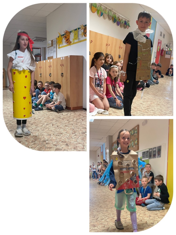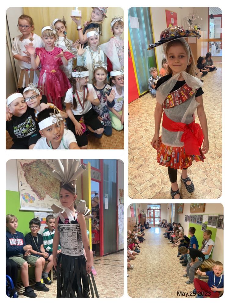 Ve školní družině jsme si tento sen splnili. Každé oddělení si připravilo modely z nejrůznějších obalových materiálů. A že jich bylo! Modelky a modelové nám představili to nejlepší a nejluxusnější ze současného světa módy. Je libo apartní klobouček, honosnou čelenku, sportovně elegantní vestičku, či luxusní večerní róbu? U nás se fantazii meze nekladly.