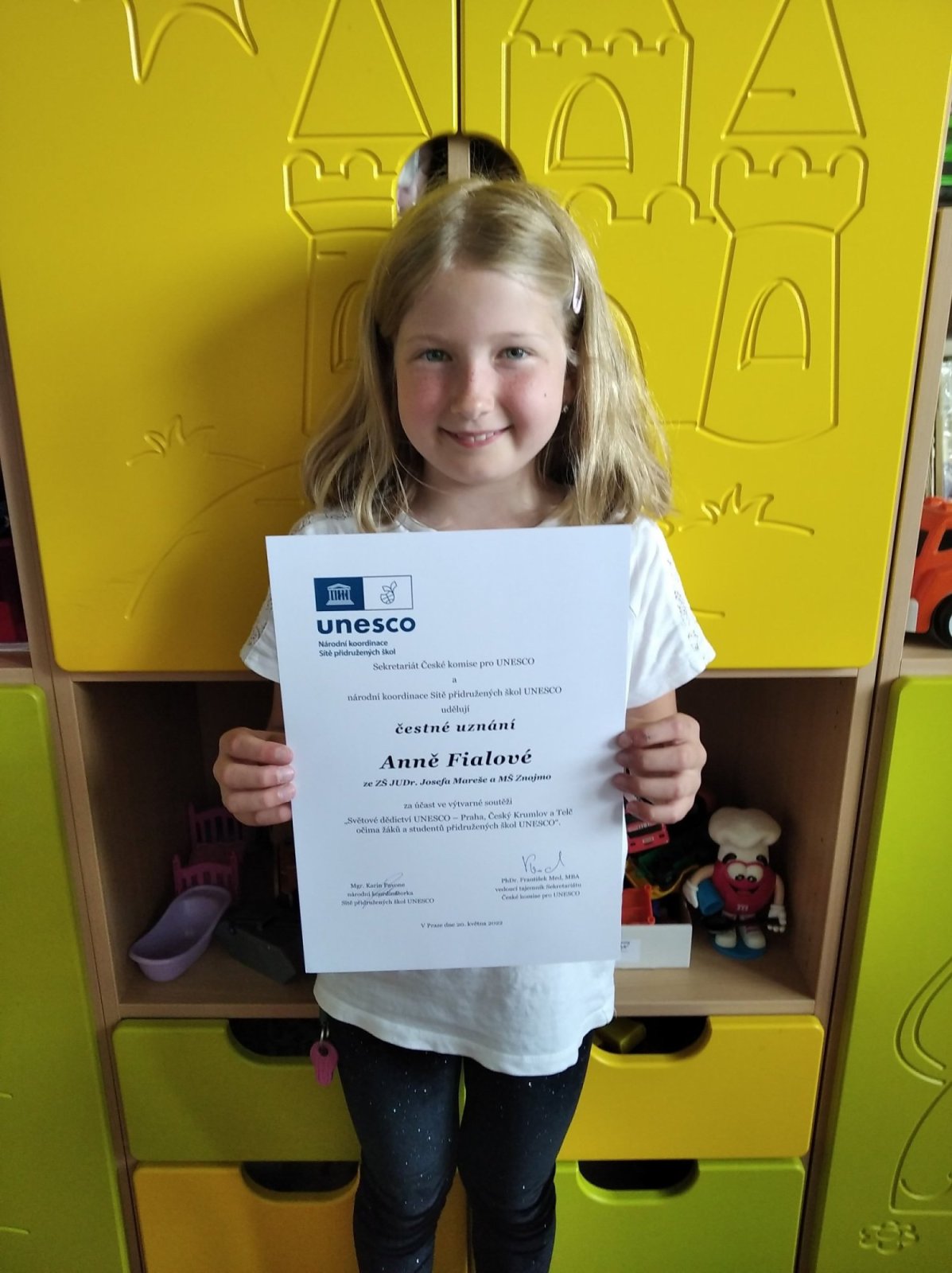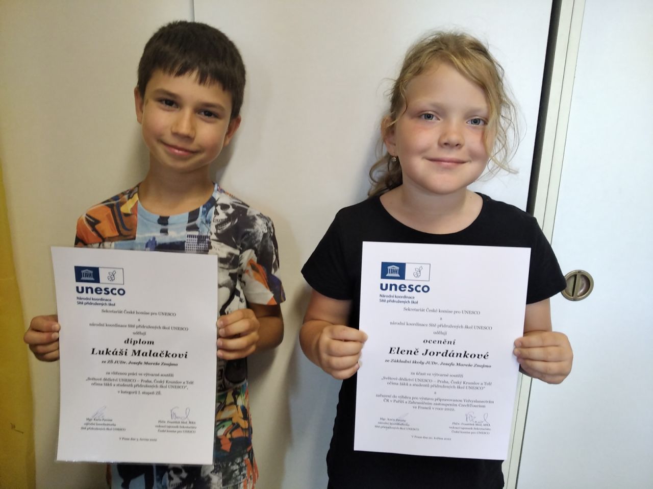 Lukáš získal vítězství ve své věkové kategorii 1. stupeň ZŠ/ZUŠ. Byl na slavnostním předání ocenění v Praze v Černínském paláci. Práce Elleny byla vybrána do výběru pro výstavu připravovanou Velvyslanectvím ČR v Paříži.