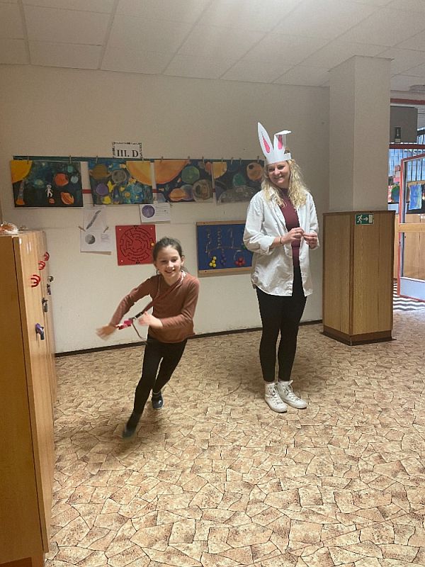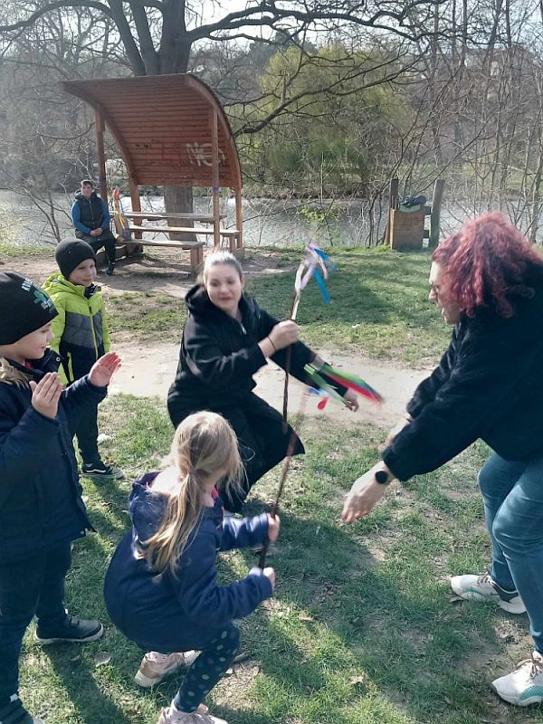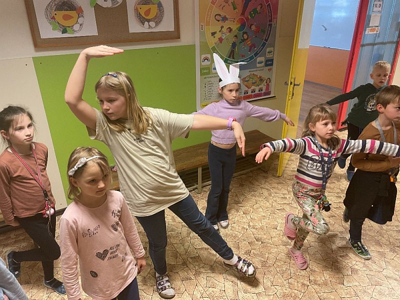 a připravil pro děti zábavné odpoledne plné pohybových úkolů a otázek k zamyšlení. Tancovalo se, hledala se vajíčka s otázkami, vyzkoušeli jsme štafetu s pomlázkou i slalom s vajíčkem.