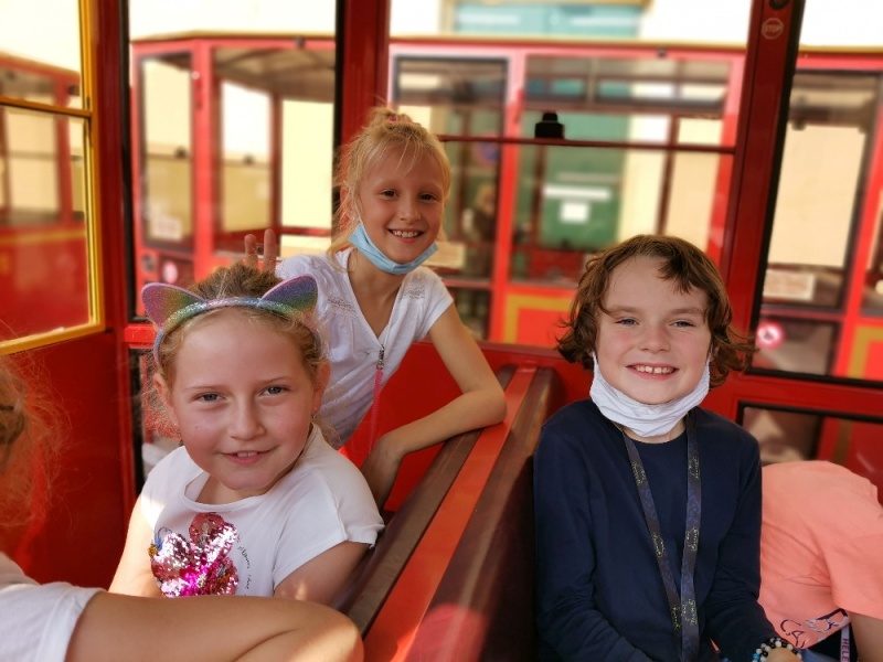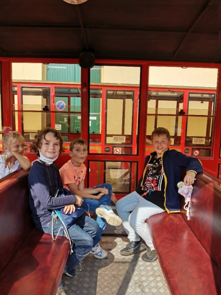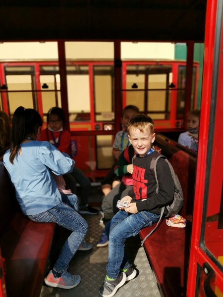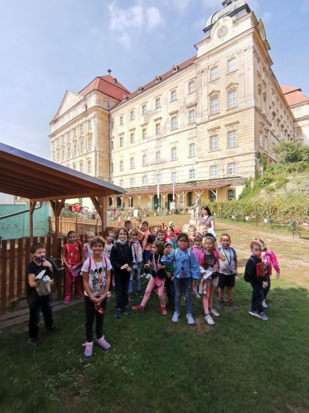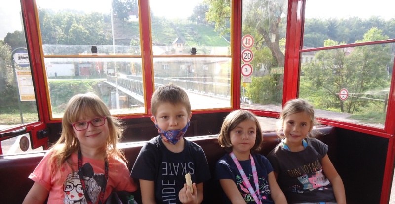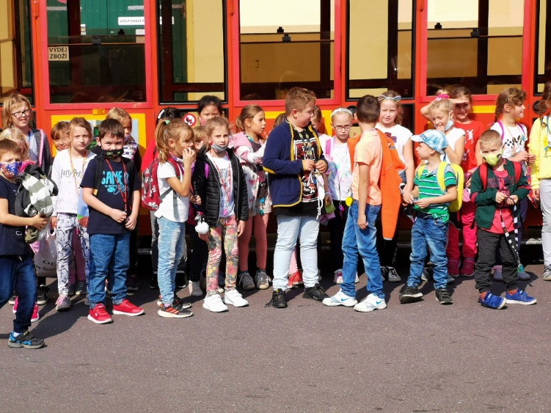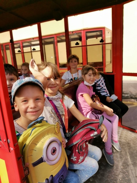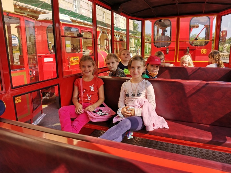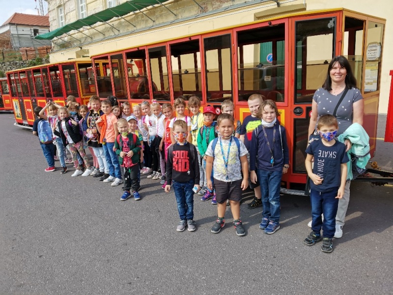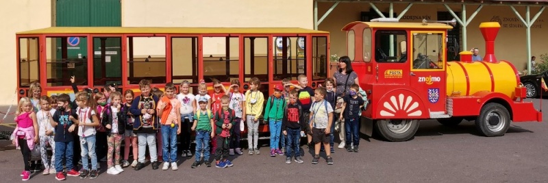 Po cestě jsme s dětmi poznávali a pojmenovávali známá místa, významné budovy a historické památky našeho města, a vyměňovali si pozdravy se spoluobčany. V okolí řeky Dyje nás zaujala bohatá podzimní úroda v zahrádkách. Také jsme si společně zazpívali známé písničky o vláčku.