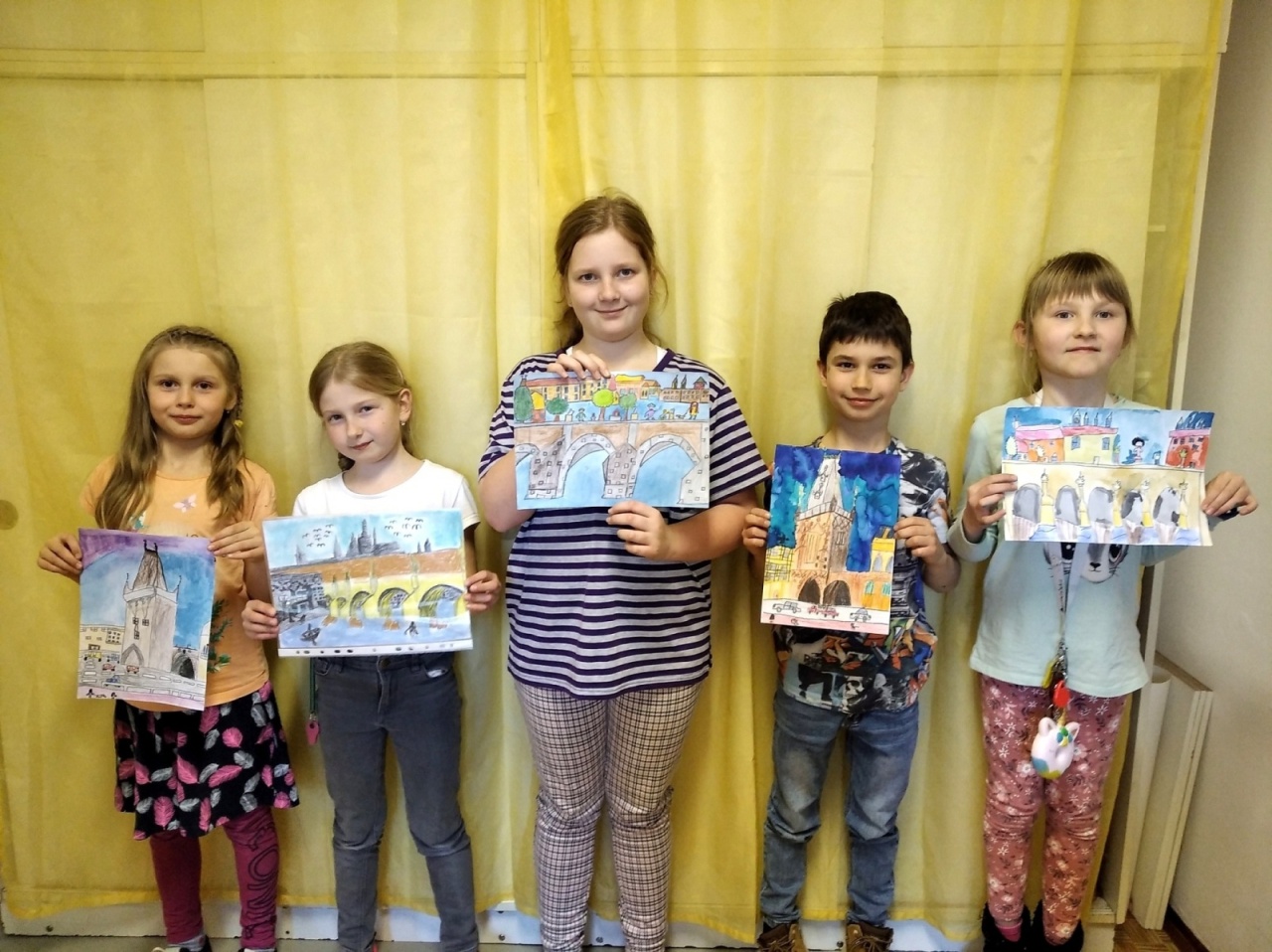 Malovali jsme kulturní památky našich měst - Prahy, Telče a Českého Krumlova. Přidaly se také děti z 4. a 8. oddělení školní družiny.