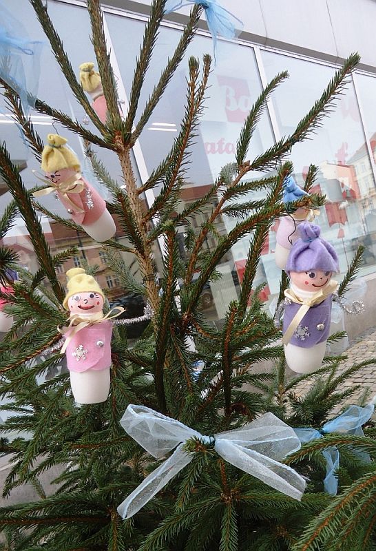 …a na jednom z těchto stromečků můžete letos vidět ozdoby, které jsme vyráběli v kroužku Šikulka.
