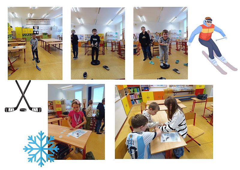 Sníh sice není, ale ve školní družině jsme si poradili i bez něj. O zimních sportech jsme se dozvěděli spoustu zajímavých informací. Na interaktivní tabuli jsme se podívali na ukázky jednotlivých sportů a samozřejmě jsme si nějaké vyzkoušeli během sportovního odpoledne.