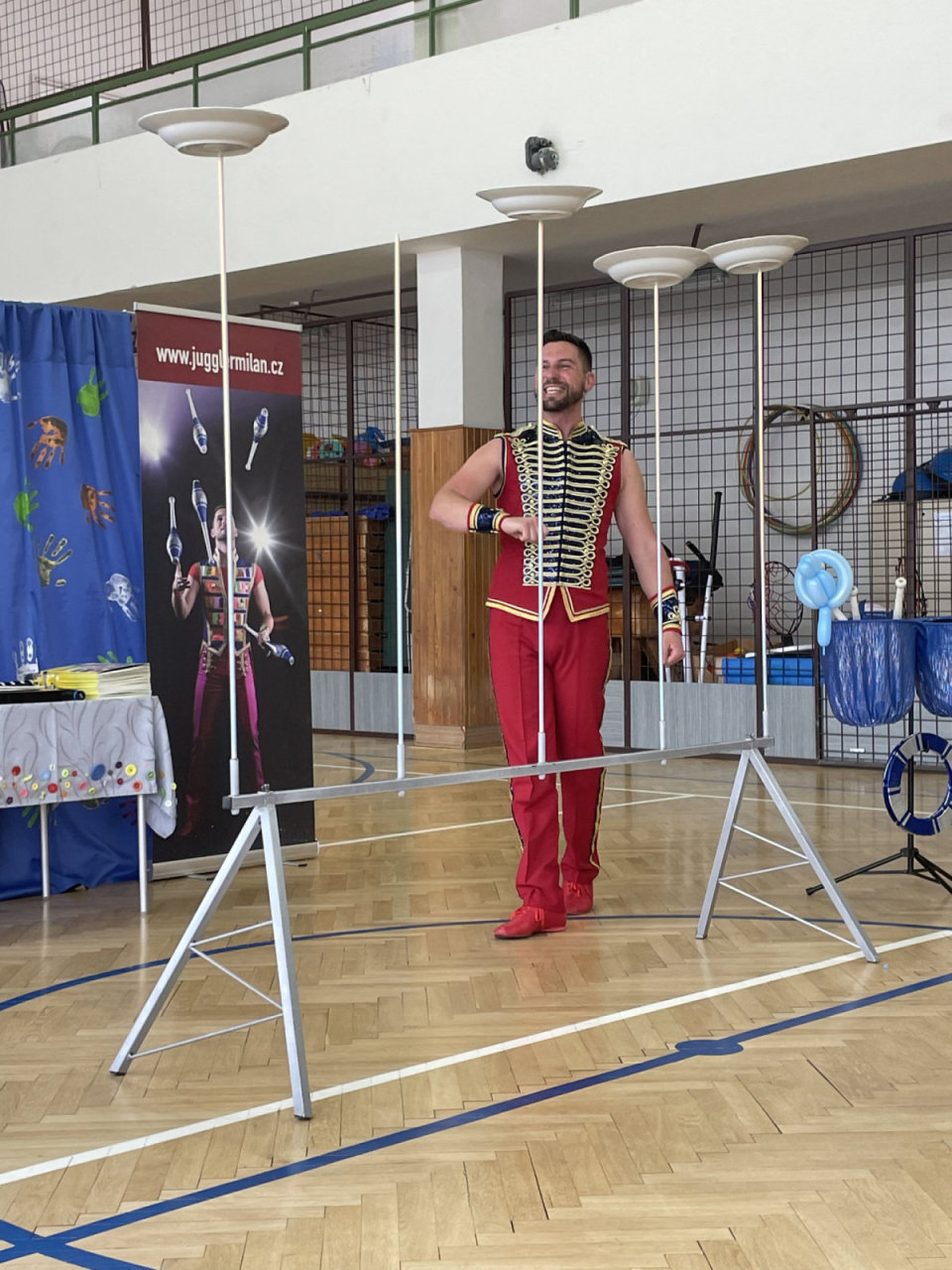 Milan Ošmera je rodákem z Třebíče. Coby samouk přičichl k žonglérské disciplíně a postupem času se sám vypracoval a dnes se může pochlubit zajímavými angažmá doma i v cizině. Pravidelně připravuje i vystoupení pro děti mateřských a základních škol.